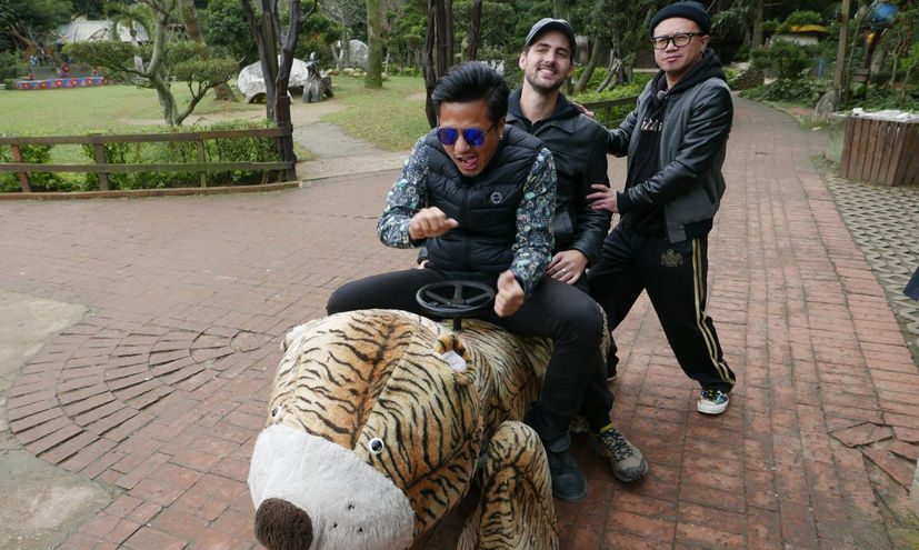 輸家兩位要分別為贏家拉車,是的,是早期的交通工具手拉車,非常逗趣啊!